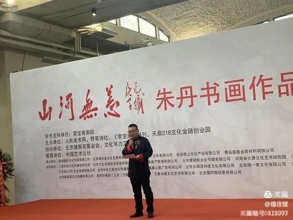 2020年10月25日下午,由荣宝斋画院担任学术支持,人民美术网、野草诗社、《荣宝斋》期刊、天鼎218文化金融创业园联合主办,北京雏菊花基金会、文化寻力工作委员会协办,中国艺术公社策划,港华国际文化传媒有限公司、北京缘庆堂文化发展有限公司、北京得一斋文化有限公司、岚梦(北京)文化有限公司、延安塬上文化产业有限公司、青岛盛奥金属材料有限公司联合承办的“山河无恙——朱丹书画作品展”在北京天鼎218文化金融创业园隆重开幕。